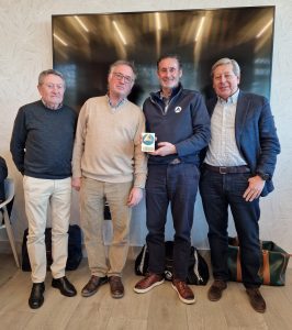 Y vayamos al capítulo de ganadores. Hubo un jugador que destacó por encima de todos, y que ganó la clasificación Hándicap, continuando su buena racha del año anterior, D. José Luis Lucero Batalla, que ganó con 39 puntos. En segunda posición con 37 puntos, D. José Diez Fontana, empatado con 37 puntos con quien les escribe, D. Juan Capella Gómez-Acebo, que quedó en esa ingrata tercera posición.