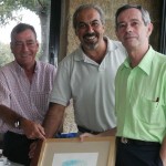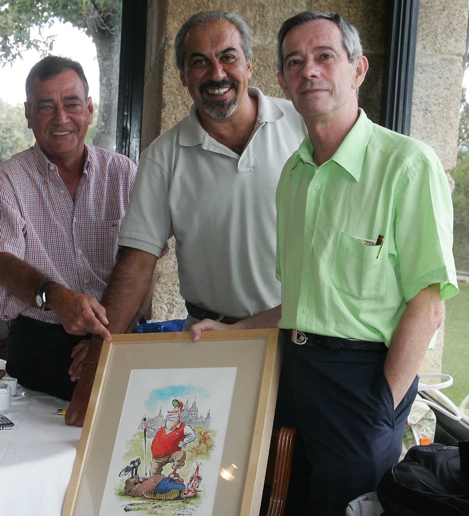 En la foto, junto con el Presi y Ventura Gilera (secretario del Club. Press) aparece D. José María Gallego, autor y donante del trofeo que viaja de casa del Presi a La Herrería y de La Herrería a casa del Presi, gane quién gane. El Presi tiene su propio Estatut. No va a ser menos que nadie, por muy catalán que sea.